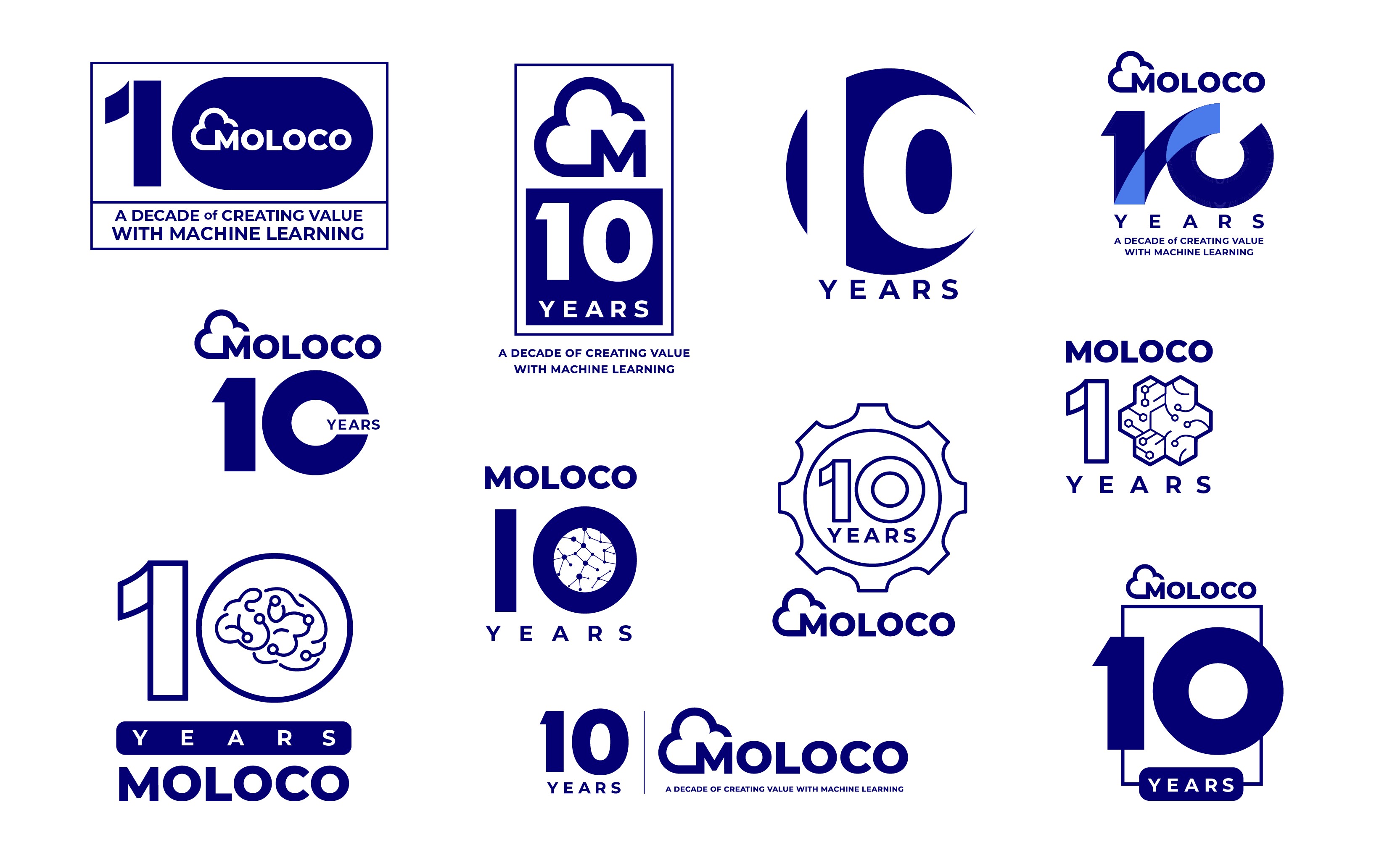 Some Kid Studio was asked to create a logo celebrating the 10th anniversary of Moloco. Celebratory yet sophisticated while keeping the Moloco name and brand front and center. The final design aimed to simply incorporate the base brand color and to work at small and large sizes for various applications from presentations to company swag.